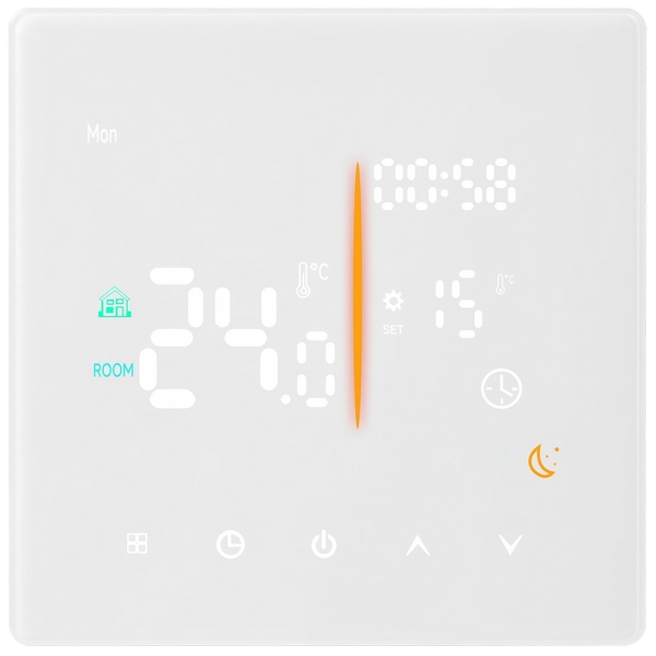 1、靈活適配:雙負(fù)載設(shè)計(jì)(3A/16A),廣泛匹配電熱膜、發(fā)熱電纜、水暖系統(tǒng)、壁掛 爐等多種設(shè)備 |